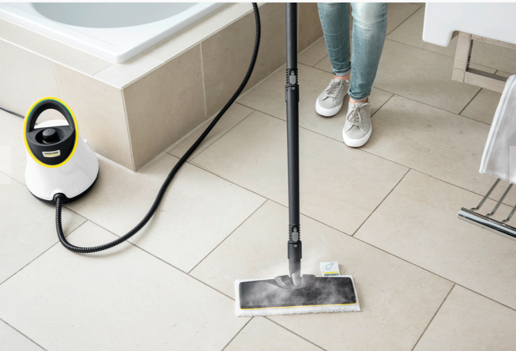 The new compact and lightweight SC 2 Deluxe entry-level steam cleaner provides two-step steam regulation for adapting the steam intensity to the surface and level of dirt.Thorough cleaning with the Kärcher steam cleaner removes 99.999% of viruses* and 99.99% of all common household bacteria** from typical household hard surfaces – and does so completely without chemicals. The SC 2 Deluxe can display the operating mode at any time via the innovative illuminated LED ring on the handle. Red indicates that the device is still heating up, while green indicates that the SC steam cleaner is ready to go. The accessories can either be stored (including the two extension tubes) entirely in an extra long accessory bag or alternatively stowed on the device itself. The EasyFix floor nozzle with flexible joint guarantees excellent ergonomics and, thanks to the lamella technology, ensures perfect cleaning results. Thanks to the convenient hook-and-loop system, the floor cleaning cloth can be quickly and easily attached to the floor nozzle and removed again without having to come into contact with dirt.When the various accessories are used as intended, tiles, hobs, exhaust hoods and even the smallest gaps are hygienically cleaned.Even stubborn dirt can be reliably removed.