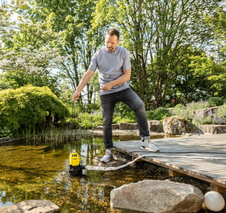 With a pumping capacity of up to 11,000 litres per hour, it's no problem for the SP 11,000 Dirt submersible pump to quickly pump water out of water butts and garden ponds. It reliably pumps out clean and dirty water containing dirt particles up to 20 mm in diameter. A prefilter is also available as an option to protect the pump impeller in case of even larger dirt particles. The submersible dirty water pump is also fitted with a float switch that switches the pump on and off depending on the water level, thereby also preventing dry running. The float switch can be fixed so that the pump can be used even at a low water level, down to a residual water depth of 25 mm. Additional extras: The robust slide ring sealing for an extra-long lifetime, a possible extension of warranty to five years and the Quick Connect connection thread for quickly connecting 1", 1 1/4" and 1 1/2" hoses.